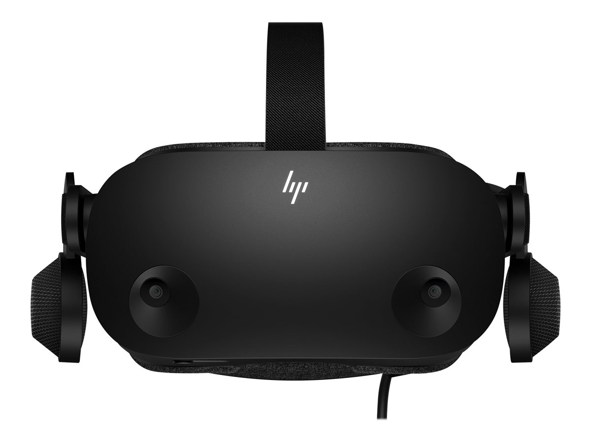- HP VR-headsett, 6 m headsett-kabel til stasjonære og bærbare PC-er, 2 bevegelseskontrollere, 1 DisplayPort til Mini-DisplayPort™-adapter, USB-C- til A-adapter, 1 strømadapter. Oppsettsdokument