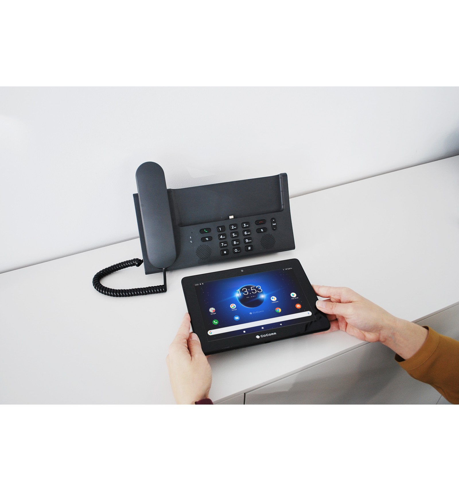 - 8 ”touch screen in horizontal position (800x1280), 8 mp front camera with locking tab