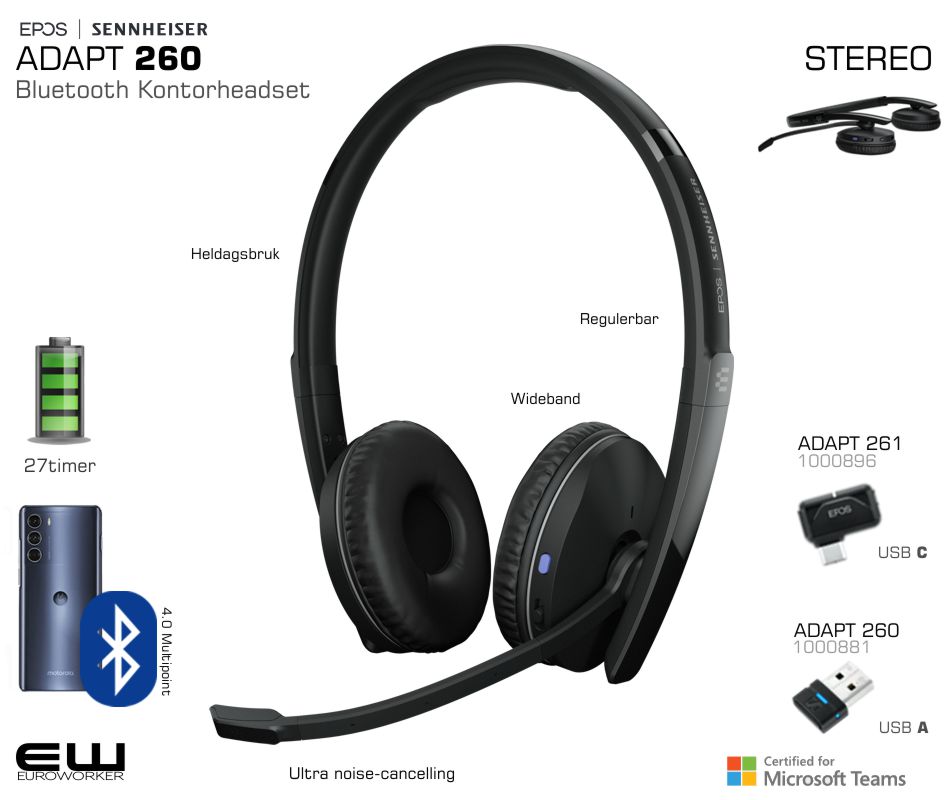 Epos Adapt 260 (Stereo) Bluetooth Headset