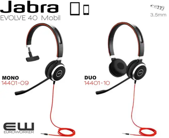 Jabra Evolve 40 Mono & Stereo 3,5mm Mobilheadset (14401-10 - 14410-09)