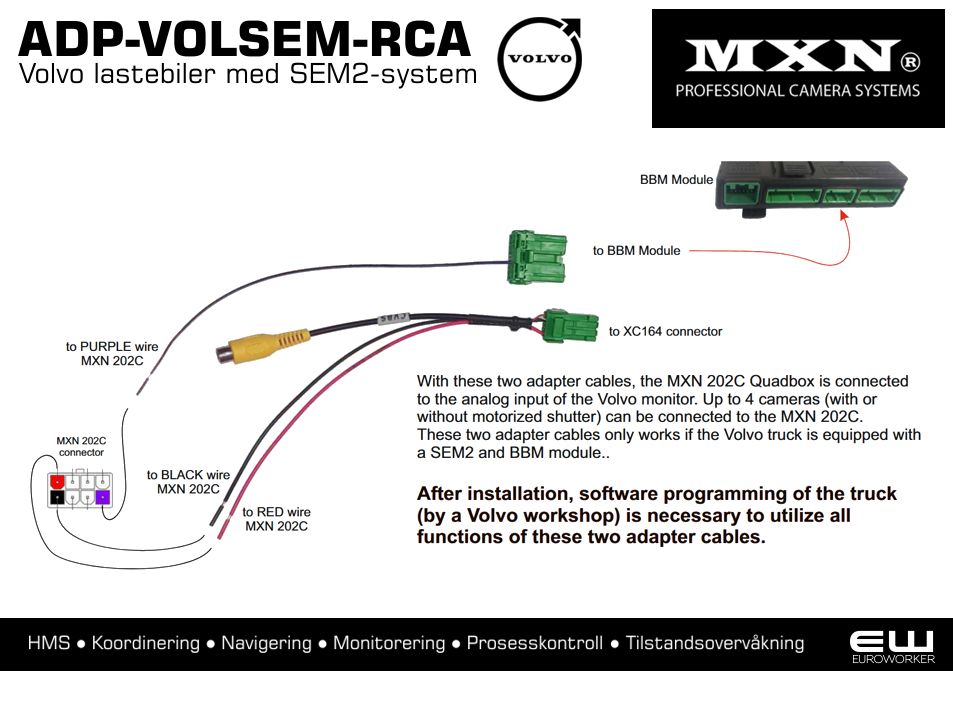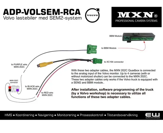MXN ADP-VOLSEM-RCA - Volvo Lastebil Interfacekabel for 1 analog MXN analog kamera