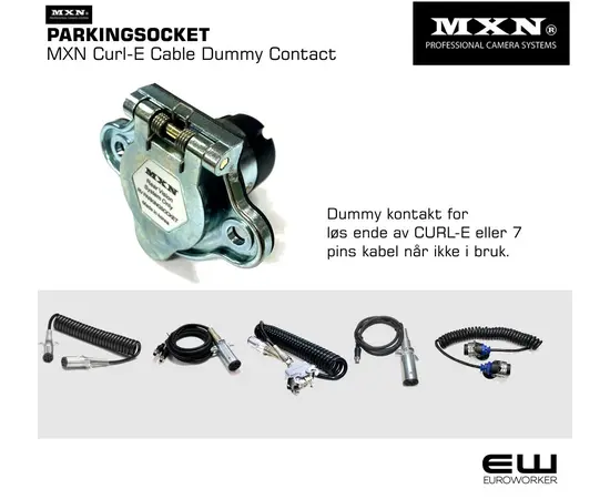 I et typisk oppsett med ryggekamerasystem for tilhenger, monteres en aktiv kontakt (CAMSOCKET) som overfører signalet, og en PARKINGSOCKET montert ved siden av for trygg docking av kabelen når tilhenger ikke er ibruk