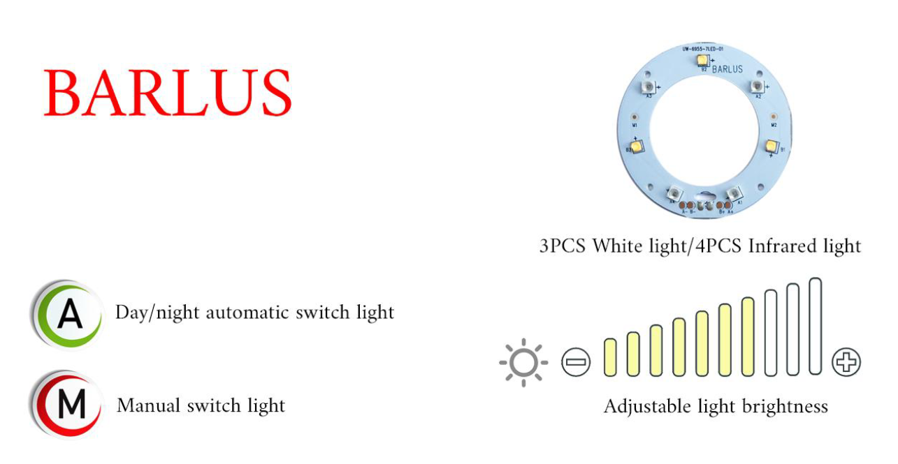 - Illumination: Light sensor contorlled 3 white light ,10 level brightness settings, Light sensor contorlled 4