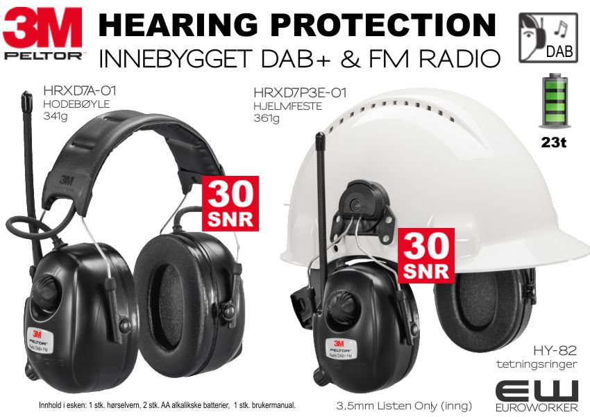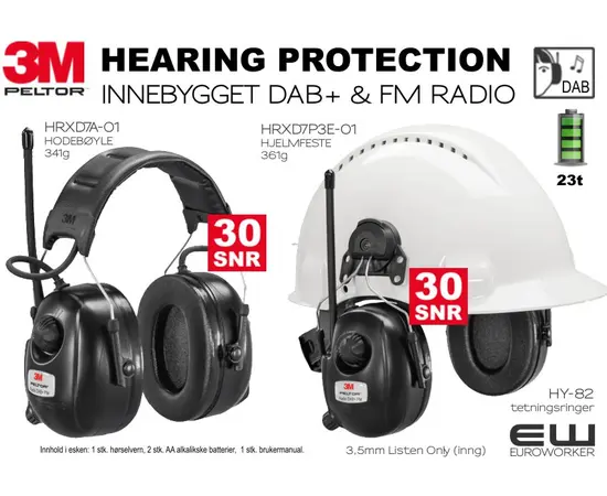 - 3M Peltor sitt nye hørselvern med innebygd DAB+ og FM mottaker.
