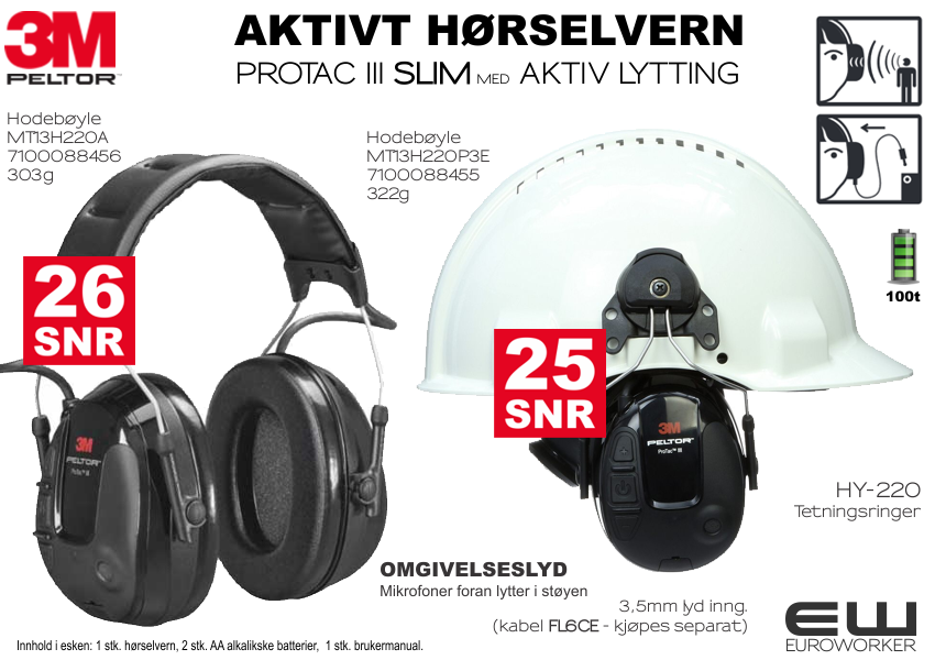 3M PELTOR ProTac III Slim (Aktiv Lytting)
