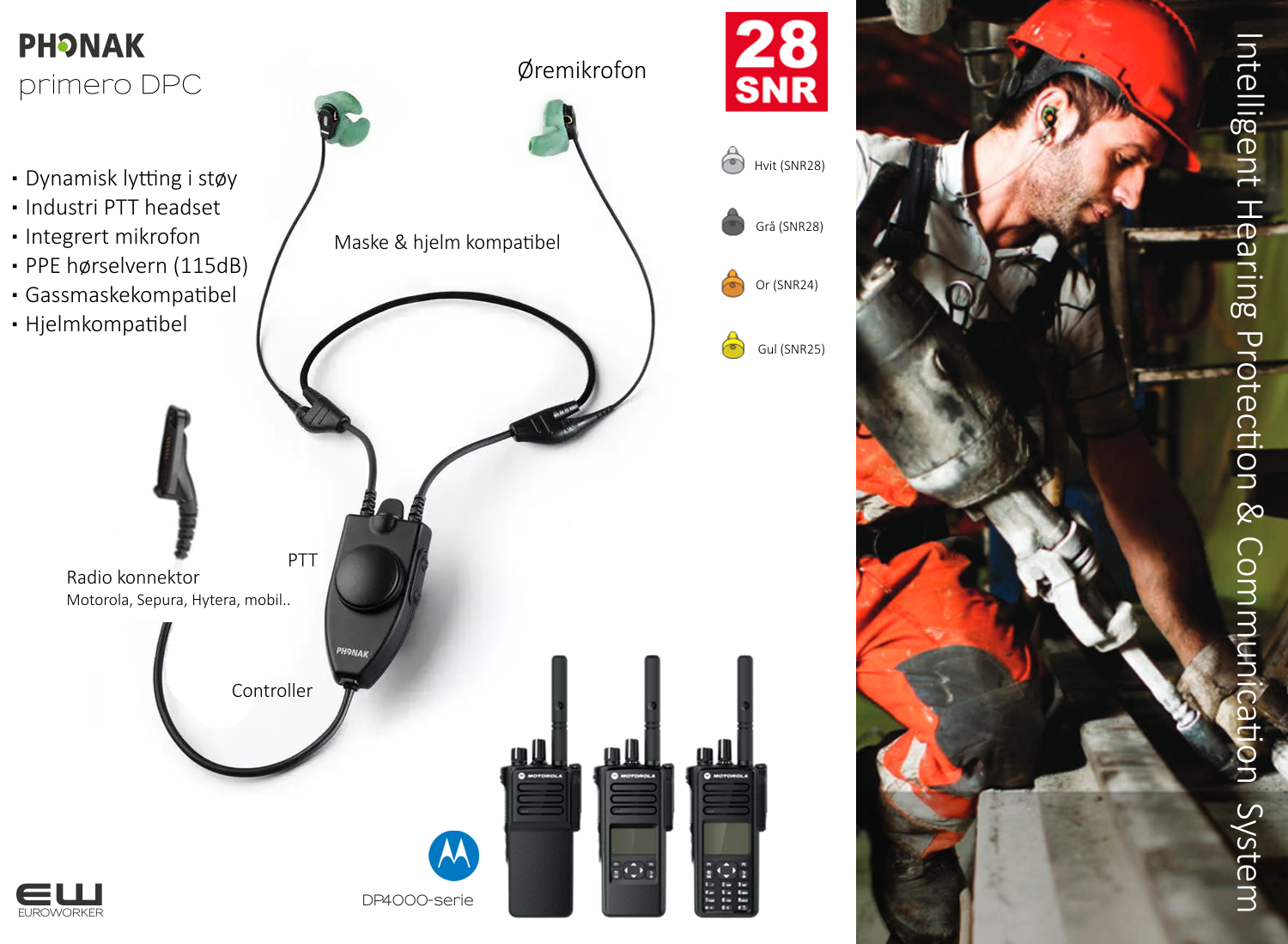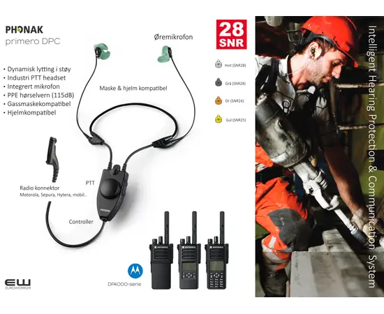 - Transmission microphone Electret noise canceling (mountable on left or right ear shell)