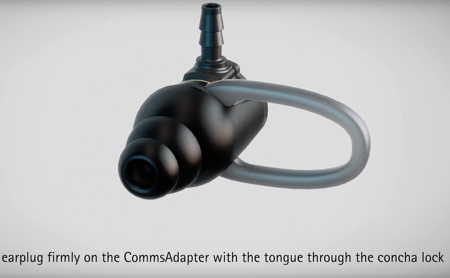 The CommsAdapter combined with Serenity Choice™ Pro Security generic earplugs is a solution that allows you to listen to radio conversations while being protected against impulse noise and being connected via an air tube to the communication device.
