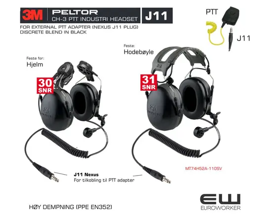 - CH-3 FLX2 - Peltor sitt nye standard industriheadset - her med J11-tilkobling for PTT adapter