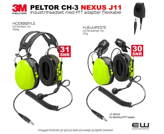 3M Peltor CH-3 Ekstern PTT Industriheadset (J11)