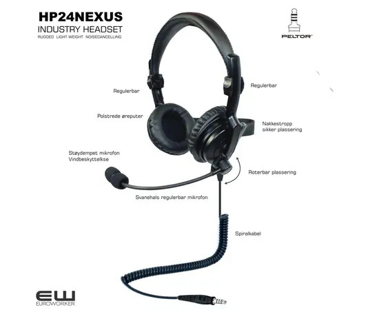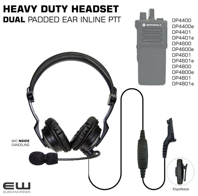 - Dual industri headset for bruk med PTT adapter (nøklingsbryter)