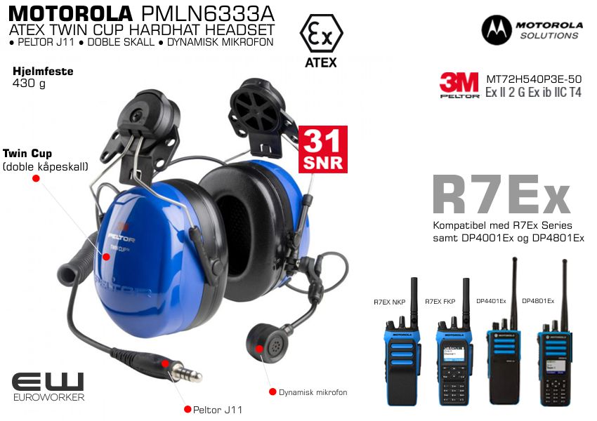 MOTOROLA PMLN6333A ATEX TWIN CUP HARDHAT HEADSET