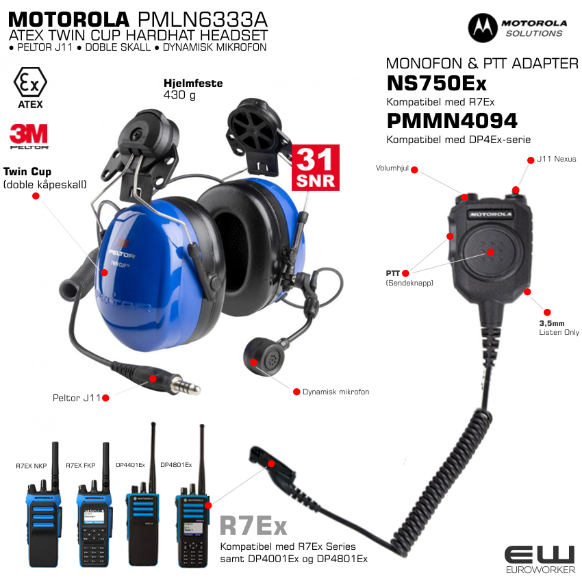 - Kompatibel med Motorola Atexgodkjent PTT adaptere som feks PMLN6368A