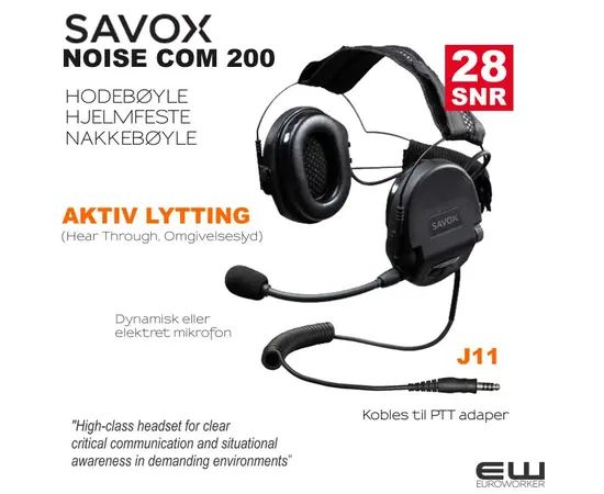 Savox Noise-COM 200 med Aktiv Lyttefunksjon (NC200, SNR28, J11)