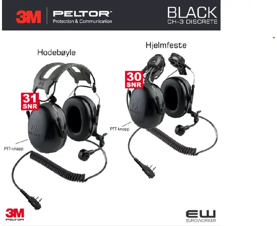 - Industriheadset fra Peltor med PTT-knapp på kåpen