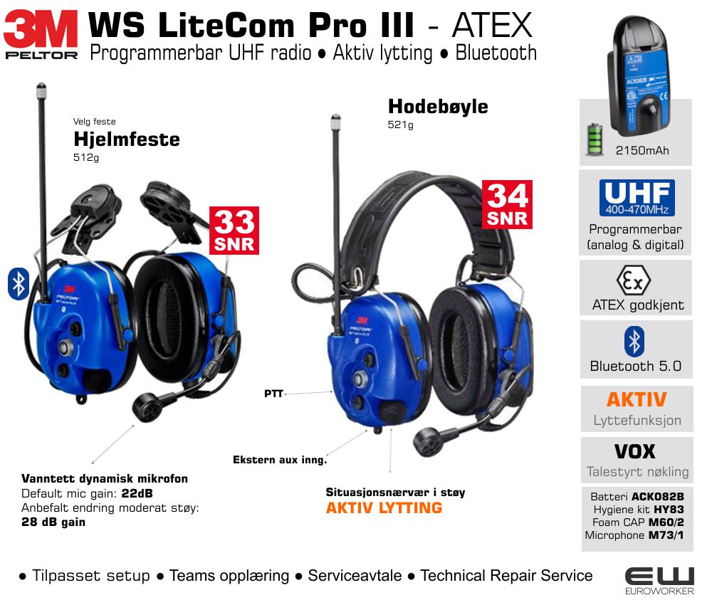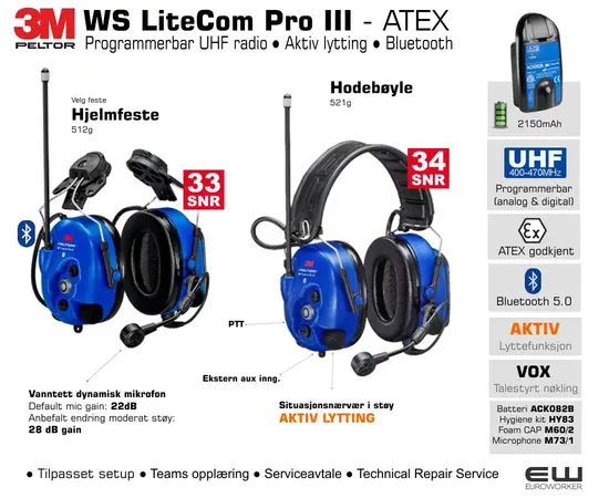 3M Peltor WS LiteCom Pro III Atex (400-470MHz, Bluetooth)