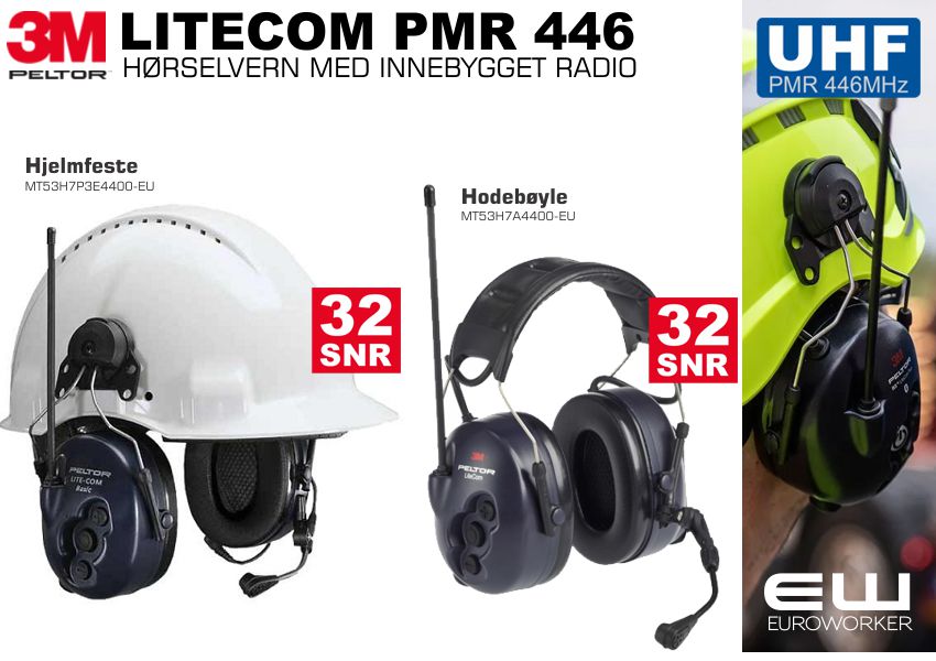 Industriheadset med innebygget UHF lisensfri kommunikasjonsradio (446MHz)