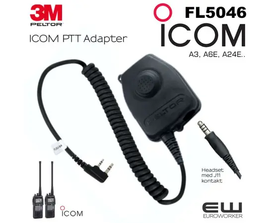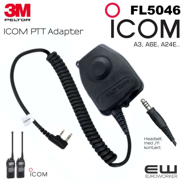 3M Peltor FL5046 PTT Adapter for Icom Airband A6E (Icom 2 pins)