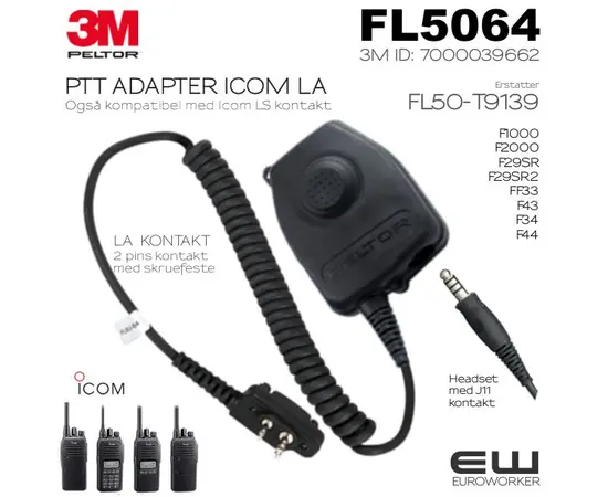 3M Peltor FL5064 PTT Adapter for Icom LA-kontakt