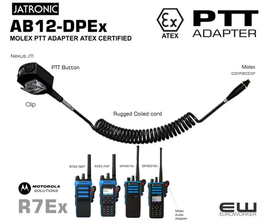 Jatronic AB12-DPEX Motorola Molex PTT Adapter (Atex, DP4000Ex, R7Ex)