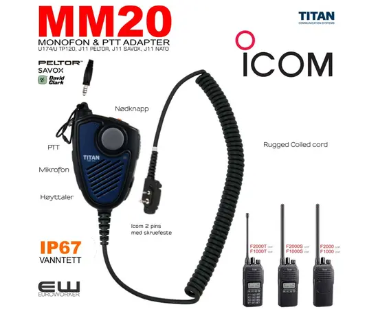 - The Titan Remote Speaker Microphone MM20 is a versatile accessory product with front and side PTT. The Nexus connector and 3.5mm jack socket enable users to combine the MM20 with a multitude of audio accessories, making it ideal for users needing to connect helmet audio systems.