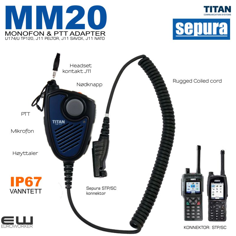 MM20 Monofon & Nøklingsbryter for Sepura (STP, SC)
