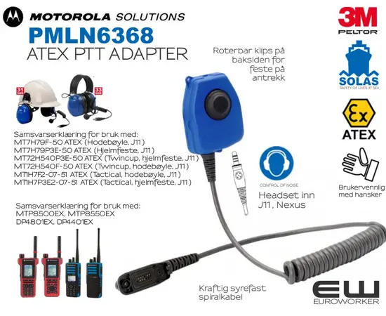3M Peltor PMLN6368 Atex PTT Adapter - Motorola DP4X01EX & MTP85X0EX