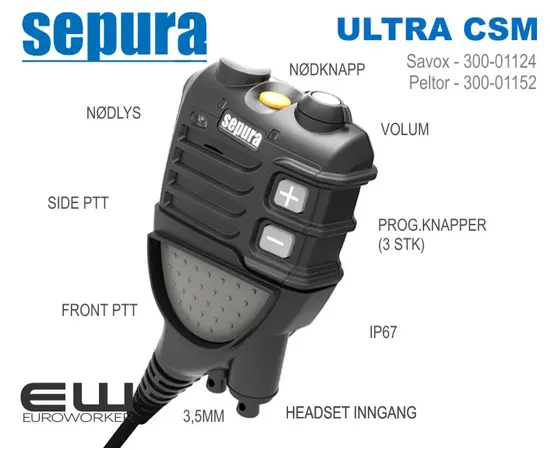 - CSM - Controller Speaker Microphone (velg Savox eller Peltor kontakt)