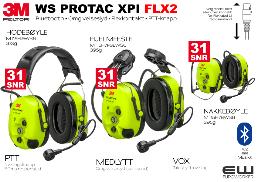 - 3M Peltor WS Protac XPI FLX2 er et høydempet EU godkjent hørselvern utviklet for profesjonelle brukere som arbeider i miljøer med høyt støynivå