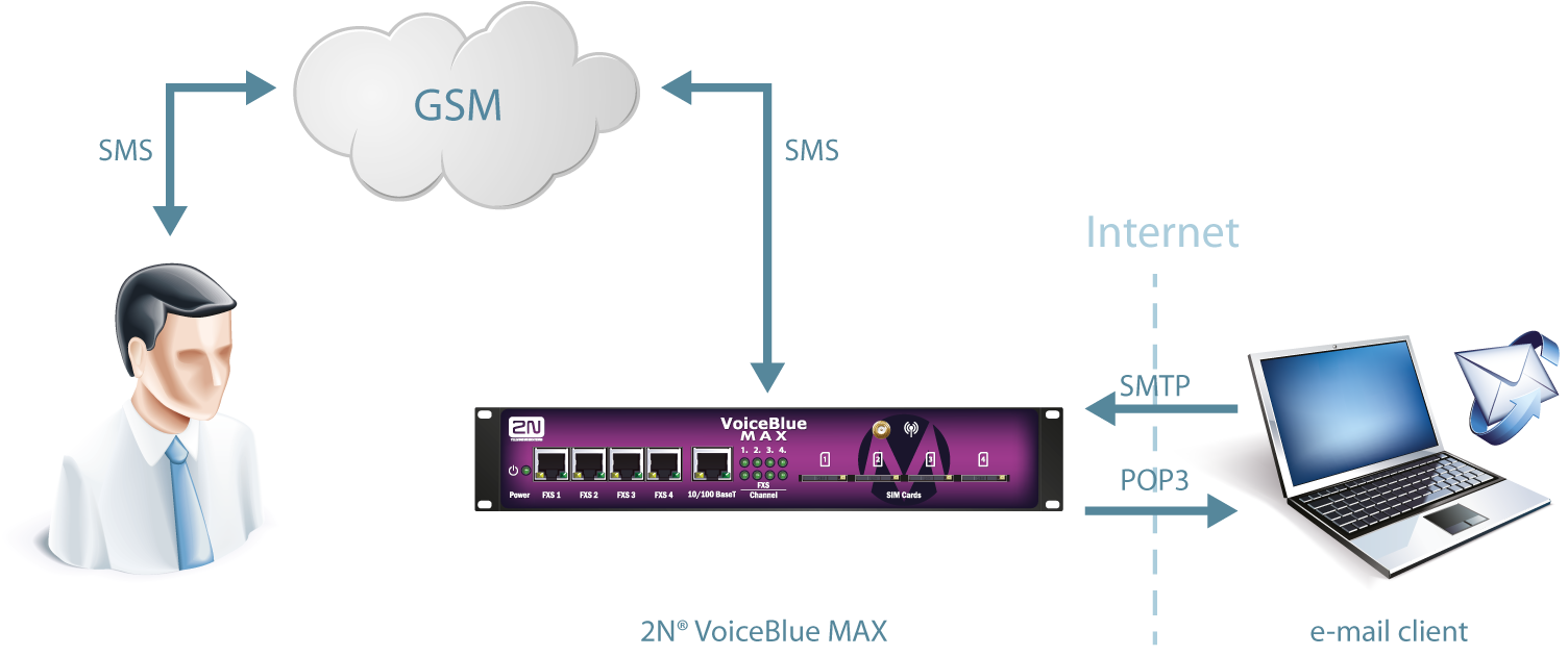 - It is also a very powerfull SMS gateway for bulk SMS messaging.® VoiceBlue MAX offers you many extra services, such as 2N® Mobility Extension.