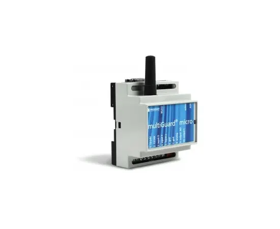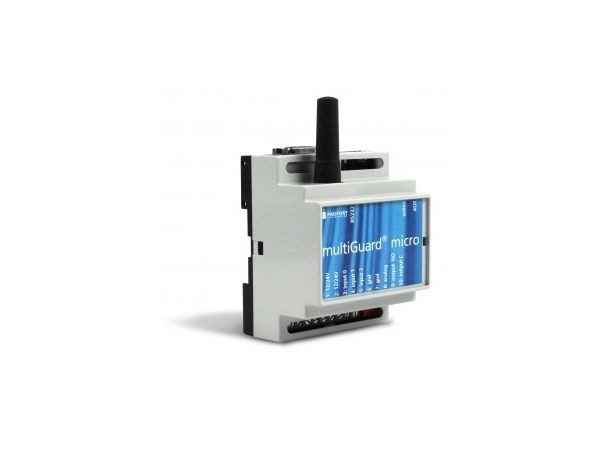 MultiGuard® micro er en komplett GSM sende- og mottaksenhet med en inngang til overføring av alarmer fra trådført sensor, en analog inngang til temperaturføler, PT100, 0-10V mm. og en utgang til styring av varme, pumper mm. Enheten har infrarød utgang med "learn"-funksjon til styring av f.eks. varmepumper.