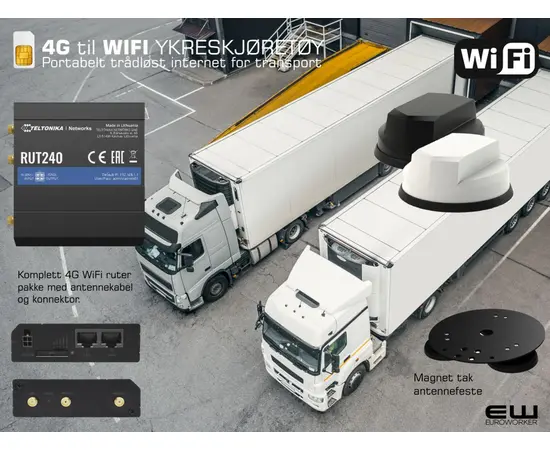 RUT240 er en enkel og funksjonell 4G-industriruter med liten formfaktor. Den passer til de fleste formål og er en av de mestselgende produktene i dette segmentet i Europa. Ruteren leverer stabil og pålitelig kommunikasjon over mobilnettet og er mye brukt for backup for fastlinje (automatisk failover), fjernstyring/fjerntilkobling, VPN og tunneleringstilkoblinger for IoT/M2M. WiFi er standard og den kan fungere som både aksesspunkt og klient samtidig. RUT240 har to LAN-porter hvorav den ene kan settes opp som enten WAN-port eller LAN-port, samt mulighet for I/O-tilkobling.