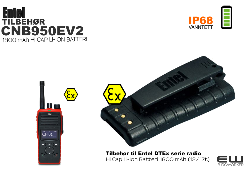Li-Ion battery technology & improved talk time – DT885FF radios are supplied with the latest intelligent Lithium-Ion battery technology as standard. One key advantage of Lithium-Ion battery technology is the way it eliminates ‘memory effect’, meaning that there is no need to fully discharge your battery before recharging. As a result of this, you are assured of a full charge each and every time you take your Entel battery from its charger.