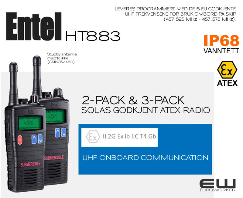 Entel HT883 2-PACK Solas Godkjent UHF Marineradio (ATEX IIA)