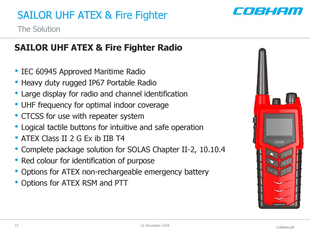 - The SAILOR SP3965 UHF Fire Fighter (ATEX) radio is a high-quality, durable model specifically designed for use in the dangerous offshore and tanker environment.
