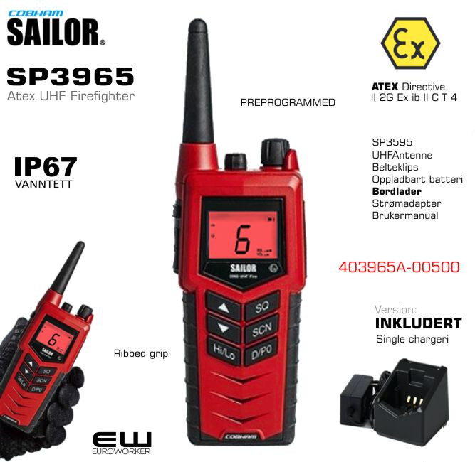 - The SAILOR SP3965 UHF Fire Fighter (ATEX)X radio features powerful transceivers and high quality audio ensuring that all parties can be heard loud and clear even when working in windy and noisy conditions.