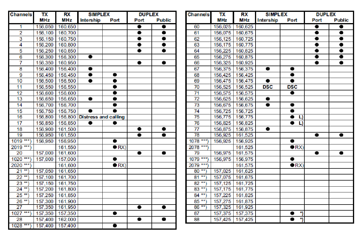 - Preprogrammed international VHF channels