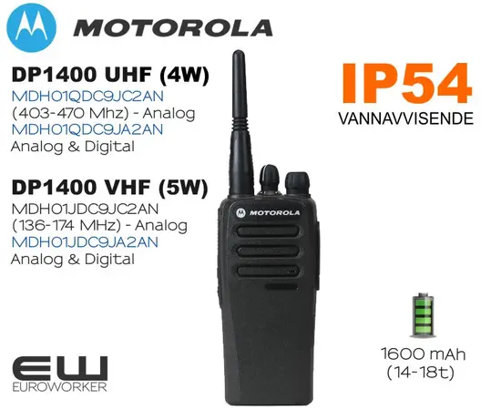 Motorola DP1400 MOTOTRBO (VHF/UHF) Håndholdt Radio (Analog/Digital)