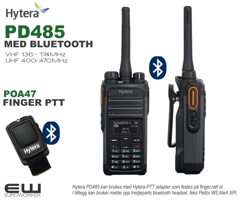 - PD485V GMD BT - VHF (1W-5W) - 136-174MHz (integrert GPS, Bluetooth 4.0, Man Down sensoralarm)