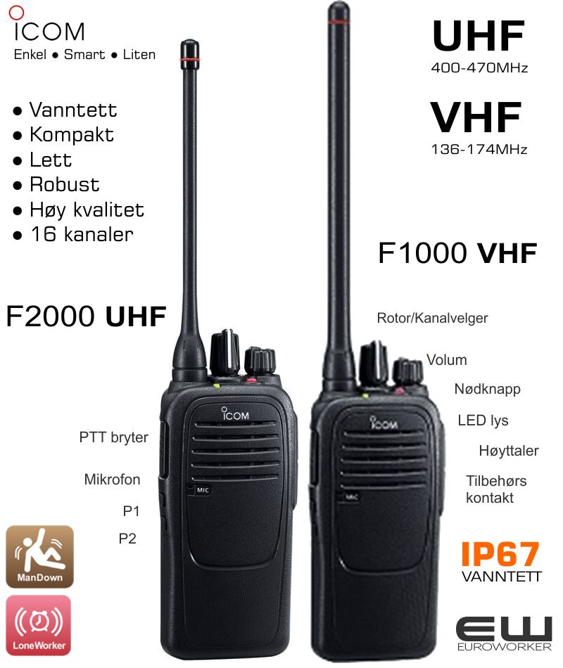 Icom F2000 (UHF) & F1000 (VHF) Vanntett (IP67) Analog Håndholdt Radio