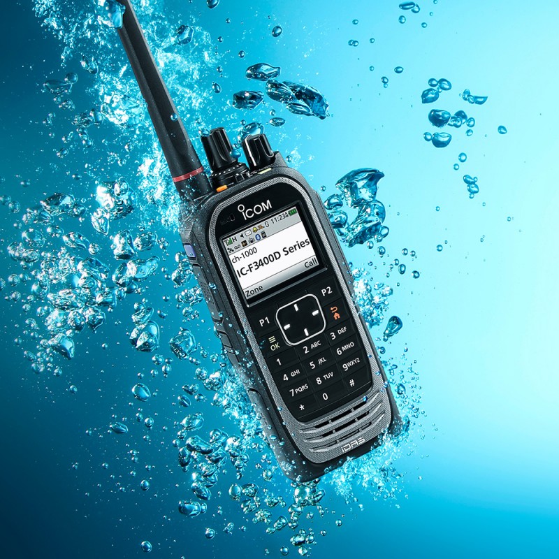 Terminalen bygger på en ny plattform med ett modernt formspråk och nya funktioner i ett smidigt format. Den IP68-klassade VHF-radion IC-F3400D har inbyggd GPS, talkryptering, rörelsesensor och aktiv brusreducering. Terminalen är förberedd för Bluetooth (via licens).