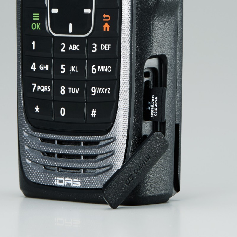 The new IDAS radios can record incoming and outgoing communications, and replay recorded communications. When a 32 GB microSD* card is used, a Max. 500 hours recording is possible. The recorded audio is saved in “wav” format and allows replay on the radio or a PC.