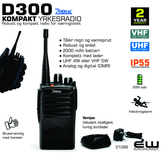 Zodiac D300 UHF er en proff og kompakt yrkesradio