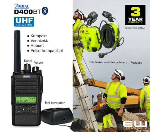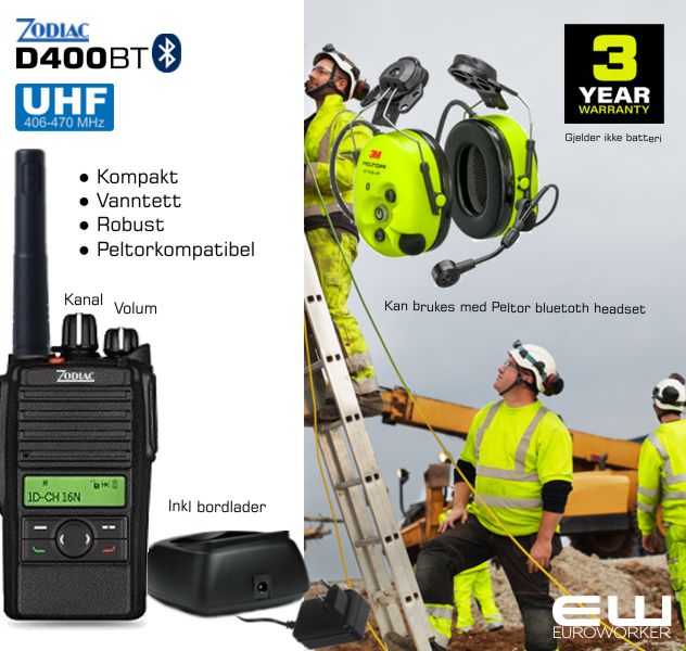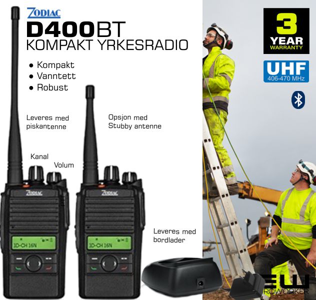 Zodiac D400BT UHF Industriradio med Bluetooth (UHF, IP67, BT)