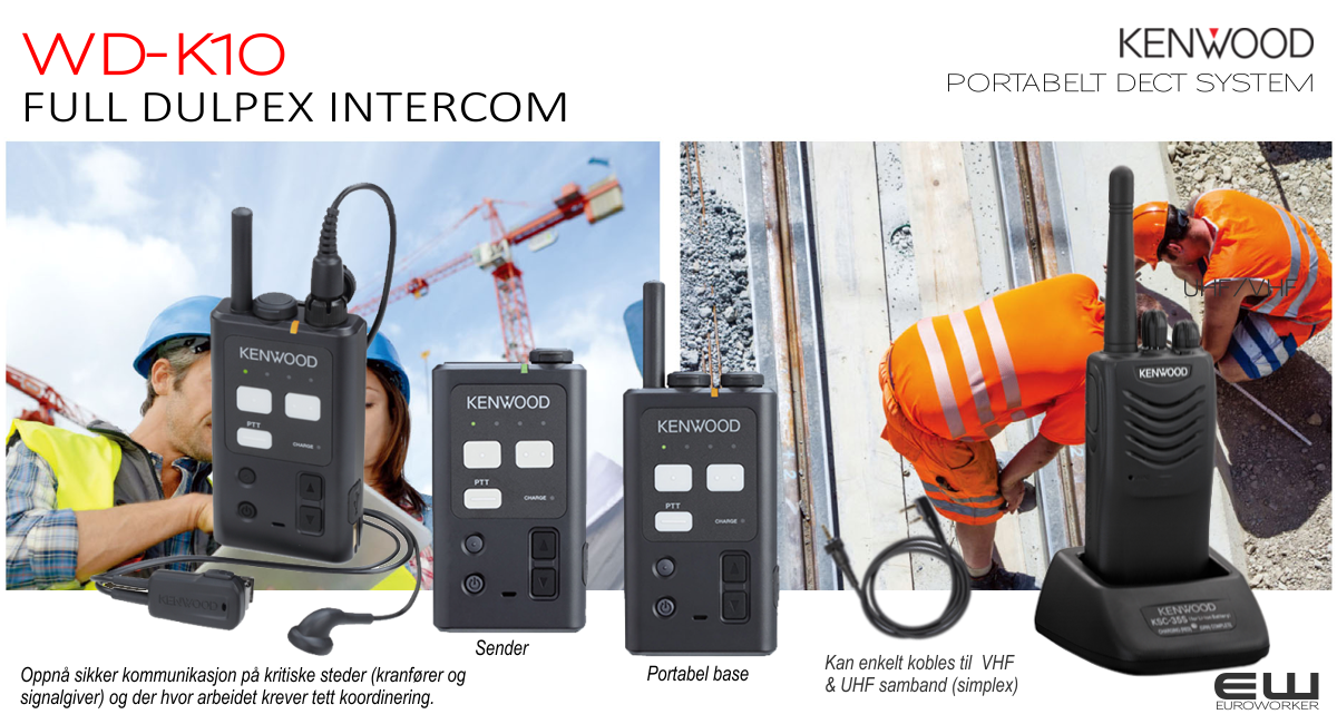 - WD-K10 er et bredt anvendelig, utvidbart og portabelt Dect Intercom toveis-samband (full duplex) for sikker, effektiv og presis toveis kommunikasjon kritiske steder.