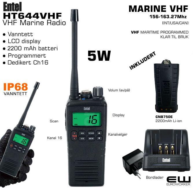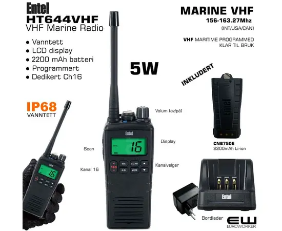 Entel HT644 VHF Marine Portable Radio (156-163.275MHz 5W Marine )