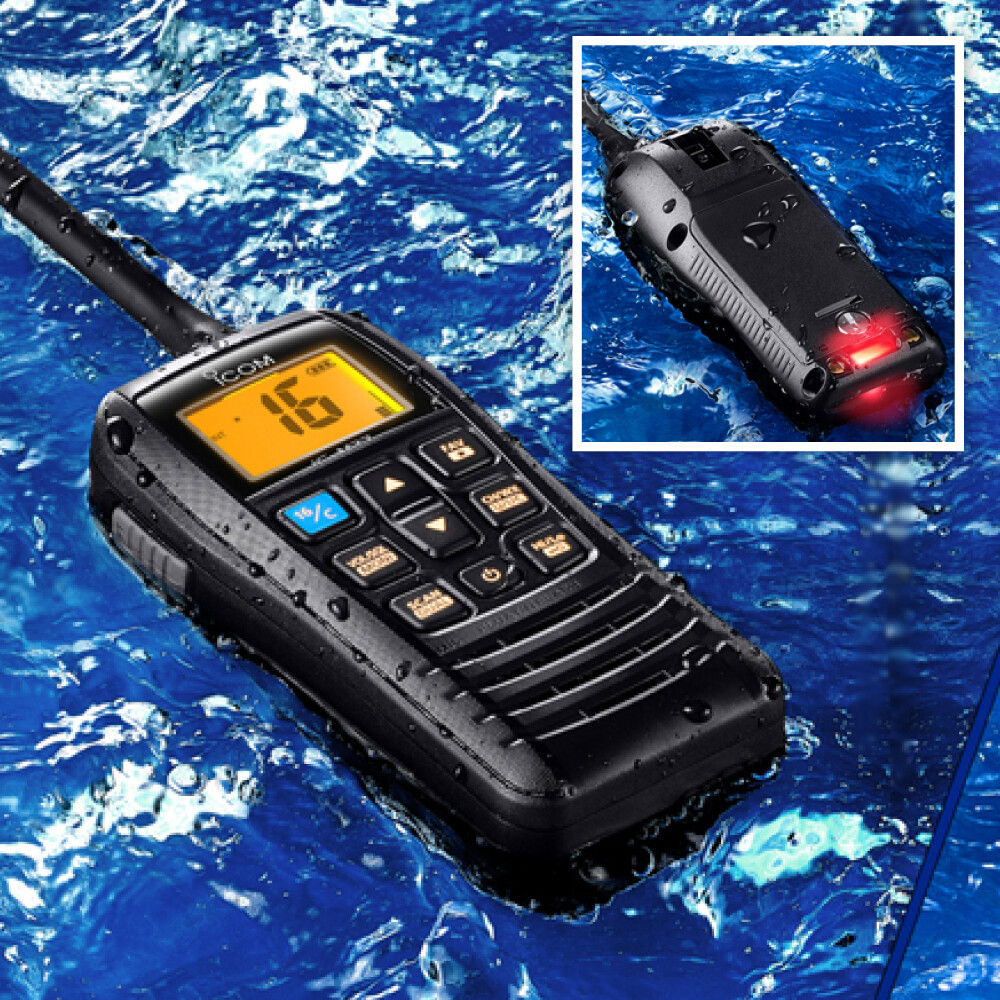 The IC-M37E is Icom's latest buoyant marine VHF handheld radio and comes with 6 watts of output power for extended communications range. This radio has a great simple design that is comfortable to hold, simple to operate and easy to read. A perfect marine VHF radio for leisure and commercial users alike.