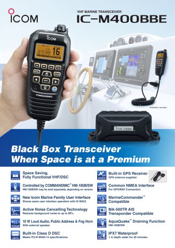 IC-M400BBE består av to deler, en "black box" og en Commandmic. Alle funksjoner inkludert DSC-drift gjøres fra Commandmic HM-195B sammen med radioenheten. IC-M400BBE kan installeres på en skjult plass.
