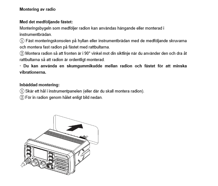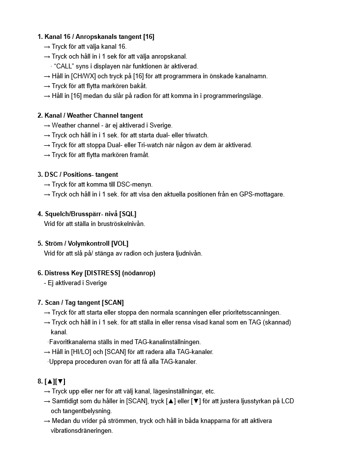 - Preprogrammert med alle nødvendige marine VHF kanaler og klar til bruk.