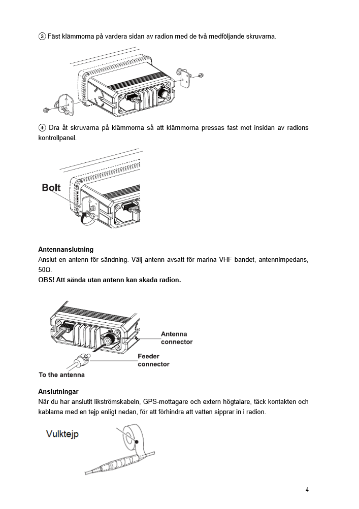 - Zodiac Seacom komplett vanntett stasjonær VHF marineradio pakke for montering i båt.