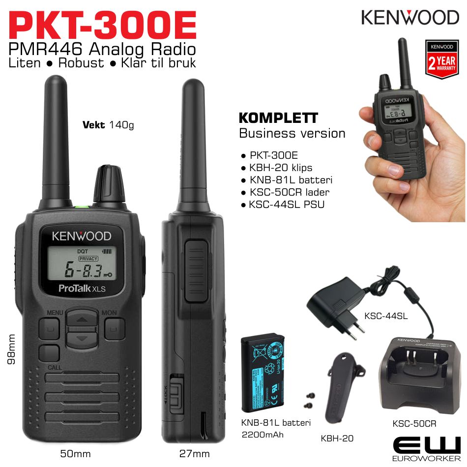 - Kenwood PKT-300E er en lisensfri og analog toveisradio for umiddelbar intern kommunikasjon mellom ansatte
